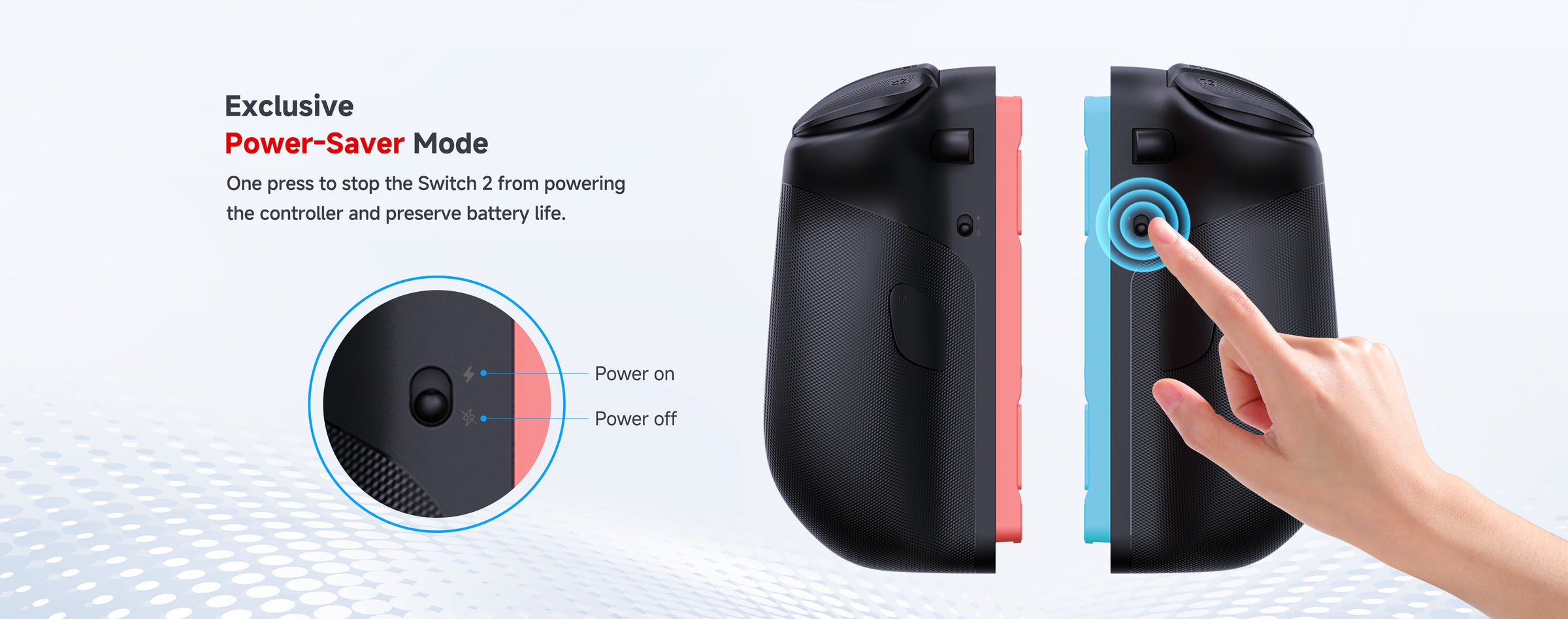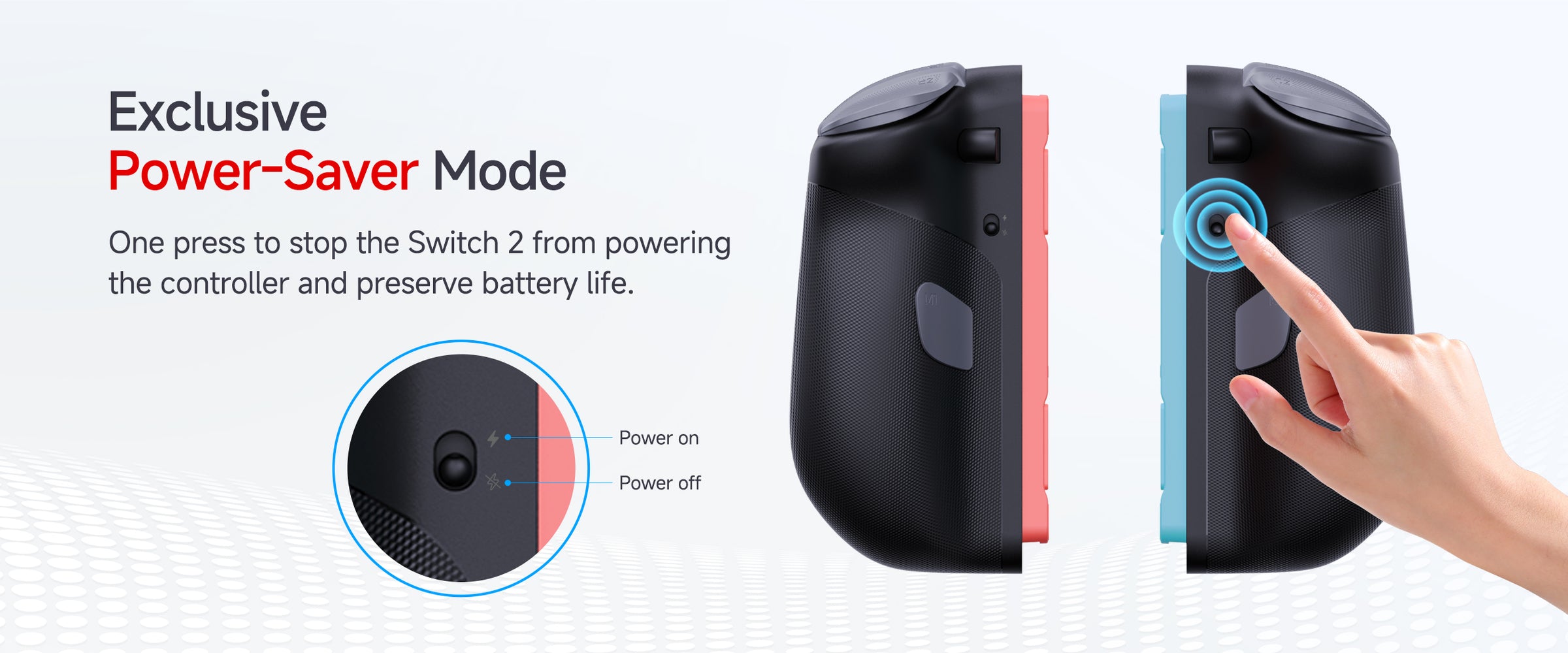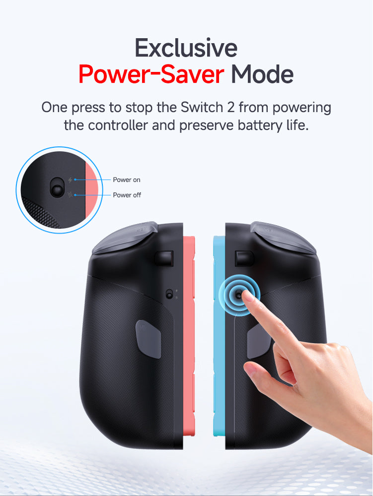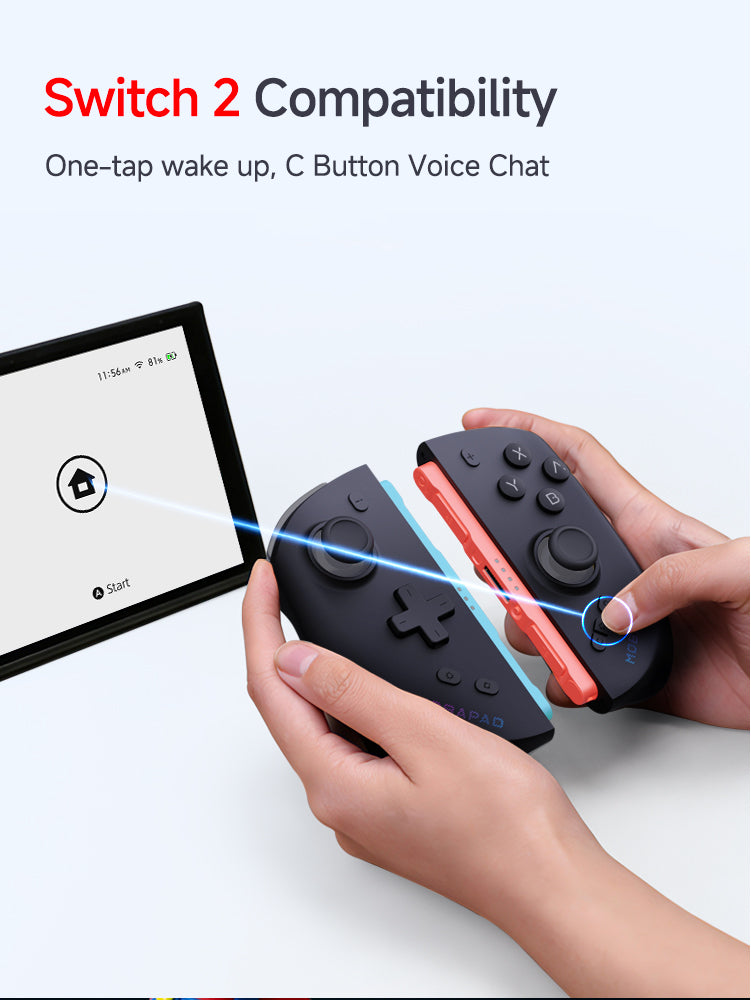 - Energiesparmodus: Reduziert den Stromverbrauch des Mobapad M12 HD/S Switch 2 Joycon von der Nintendo Switch 2 und verlängert so die Akkulaufzeit der Konsole um bis zu 30 Minuten.
