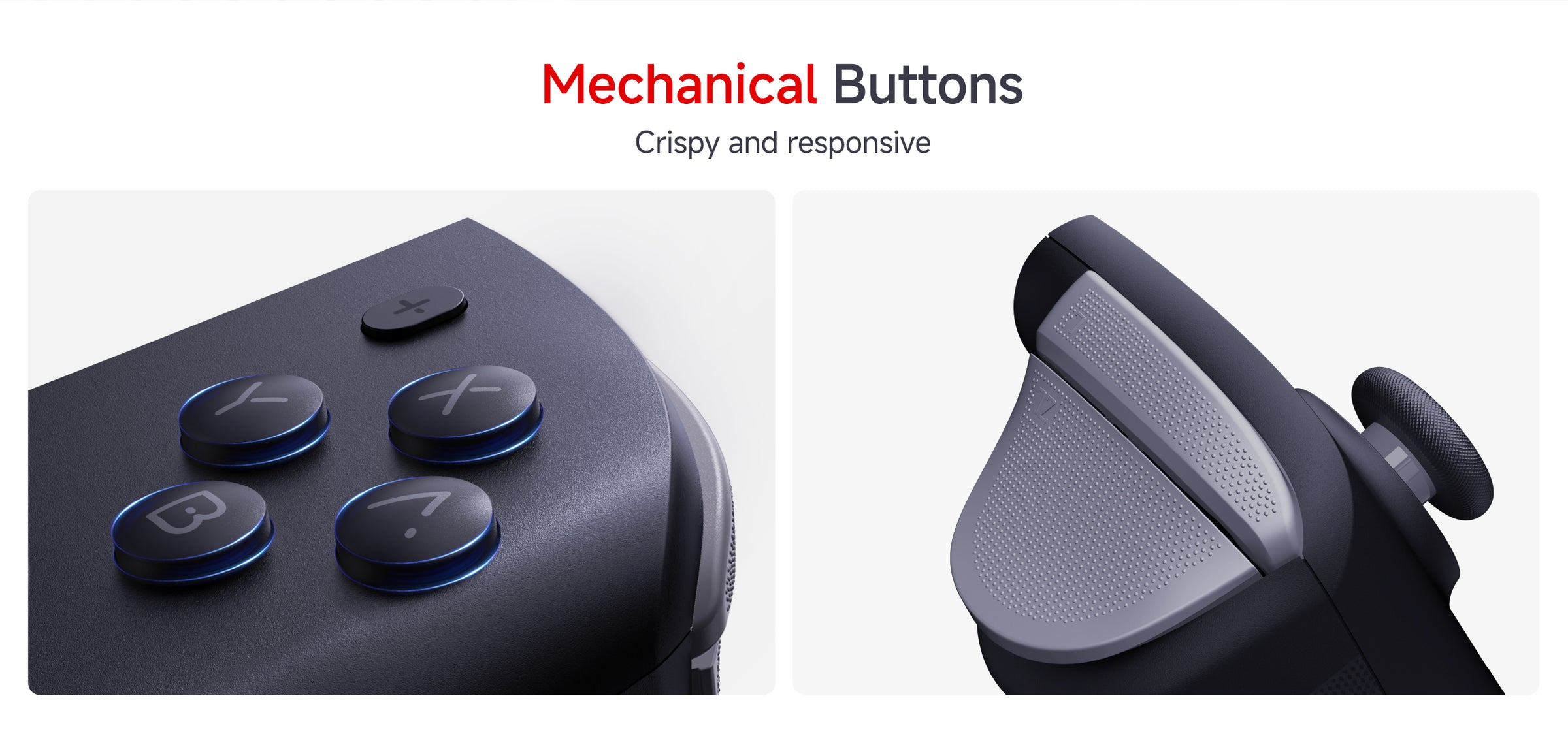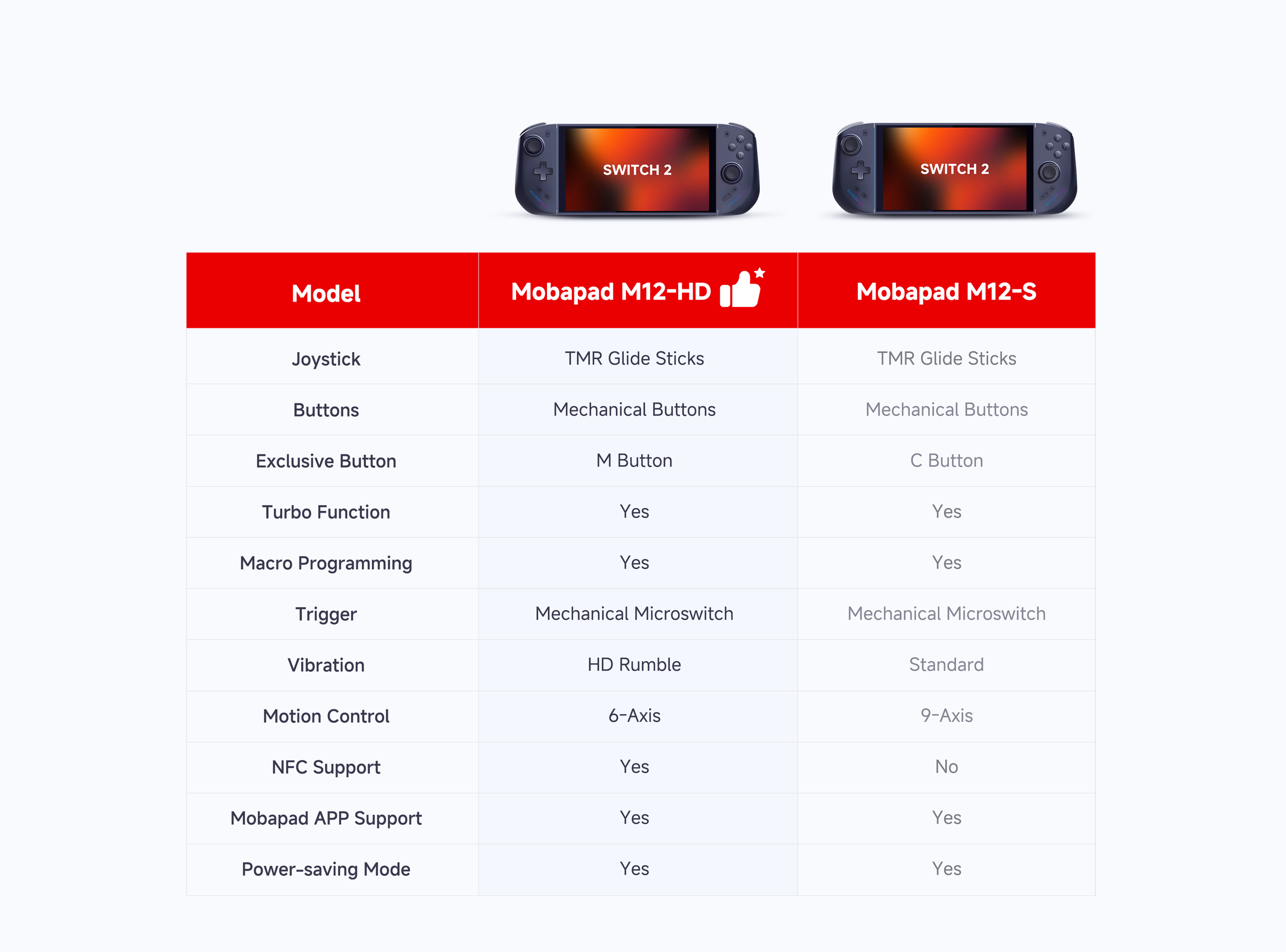 - Verbesserte Ergonomie für Switch 2: Mit Blick auf den breiteren Bildschirm der Switch 2 wurden das Mobapad M12 HD und M12S ergonomisch neu gestaltet, um sich komfortabler in der Hand anzufühlen und besser auf der Konsole ausbalanciert zu sein – ohne den Controller einfach nur größer zu machen.