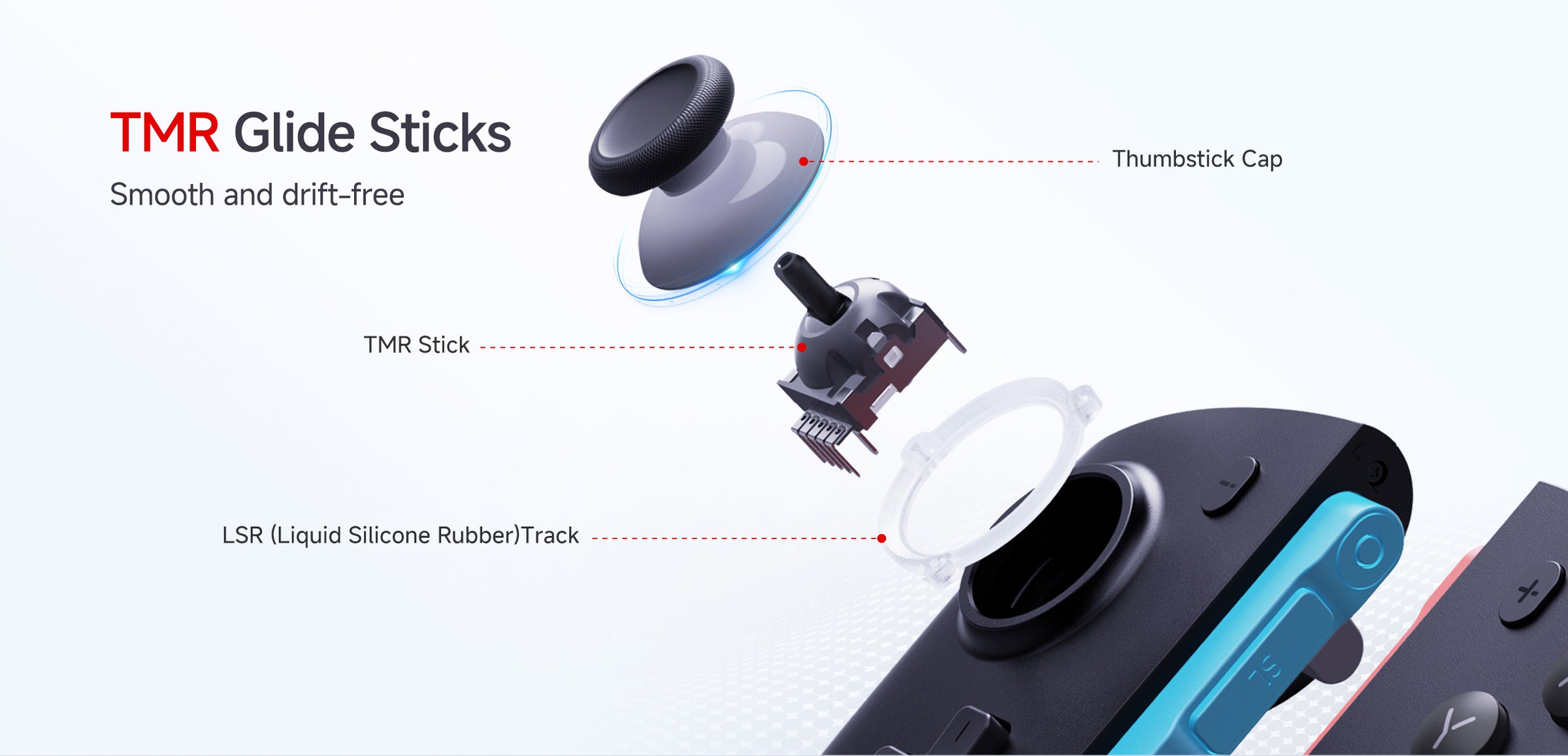 - TMR Glide Stick: Driftfrei, leichtgängig, ohne Kontakt der Stickkante.