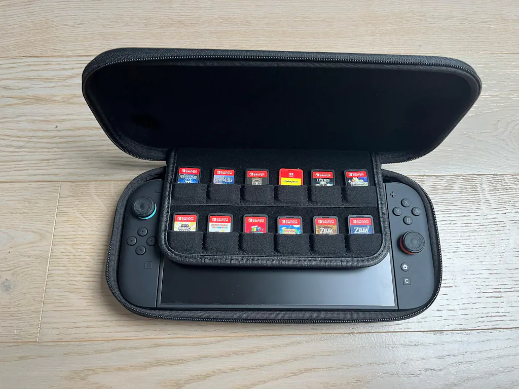 Precision-aligned plush felt slots secure up to 12 game cards with anti-static and anti-scratch protection.